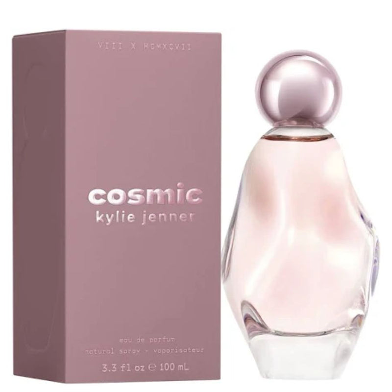 "Cosmic" by Kylie Jenner Eau de Parfum is a magnetic amber–floral that blends luminous fruit and florals with a cozy, skin-hugging dry down.