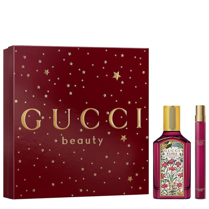 “Flora Gorgeous Gardenia Intense” by Gucci Eau de Parfum – 2-Piece Gift Set (50ml + 10ml) is a richer, deeper take on the beloved Flora signature—glowing gardenia wrapped in luminous florals and warm woods.