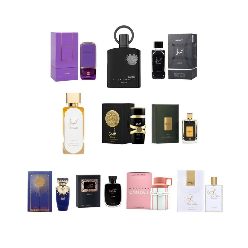 A curated selection of 10 authentic Unisex Arabic-inspired fragrances valued at over $500. Perfect for resellers seeking unique oud scents, deep notes, and luxury appeal at wholesale value.