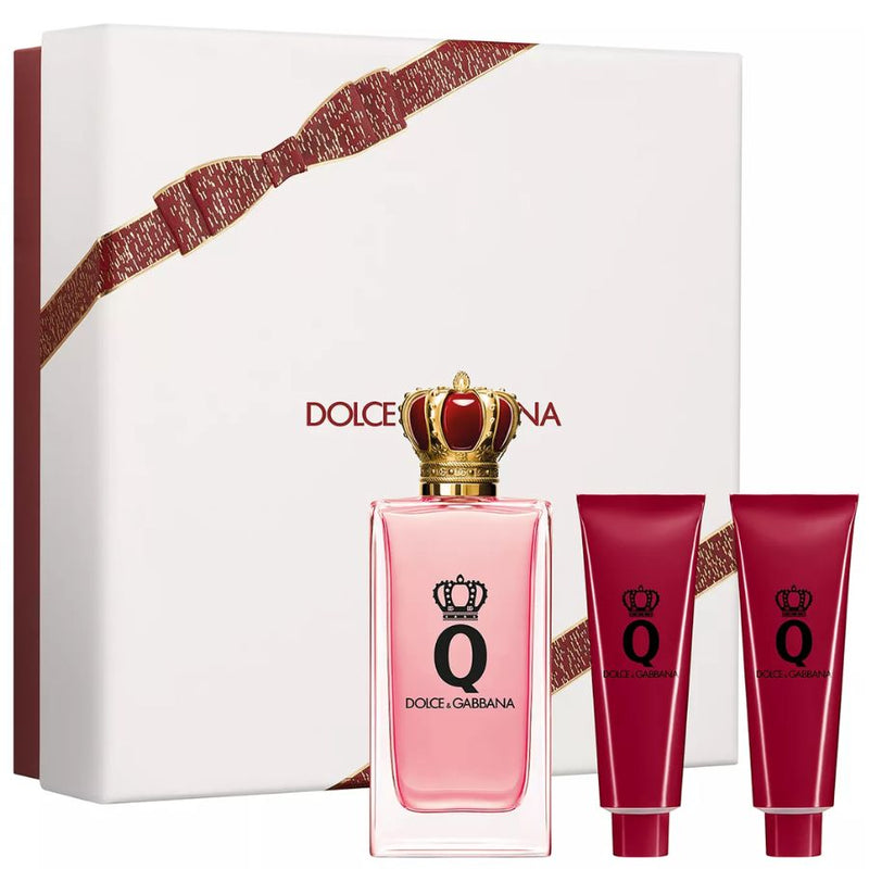 “Q by Dolce & Gabbana” Eau de Parfum is a vibrant, feminine fragrance that blends sparkling citrus with juicy cherry and warm woods. This 3-piece gift set includes a 3.4 oz EDP, matching shower gel, and body lotion—perfect for layering and elevating your daily routine.