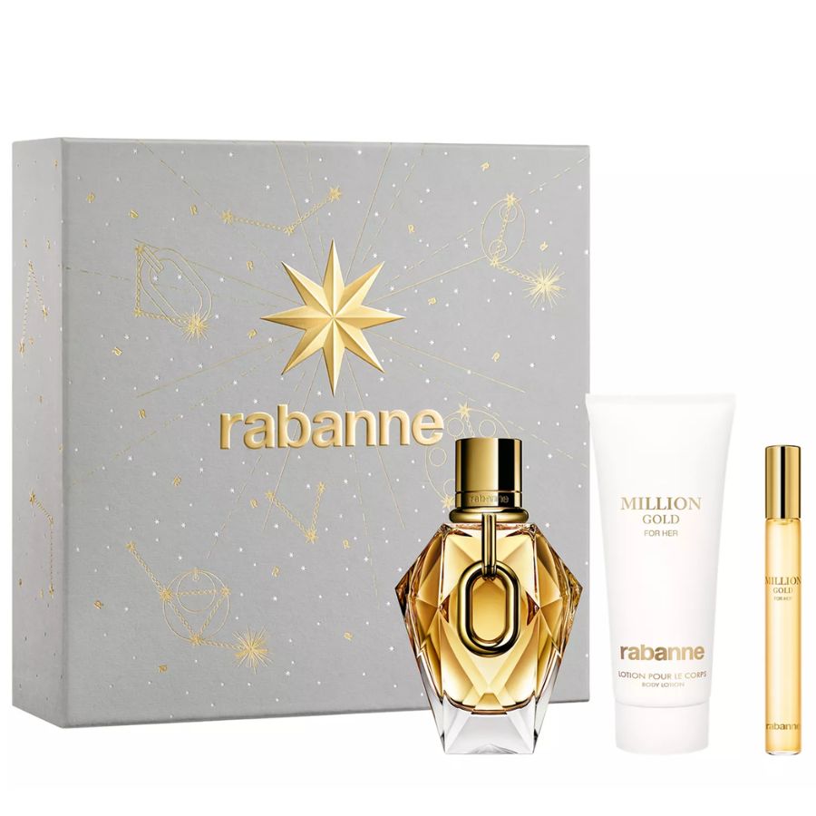 Bottle: A multifaceted, jewel-like gold flacon accented with Rabanne’s iconic XL link detail—glamorous on the vanity and easy to spot in your bag.