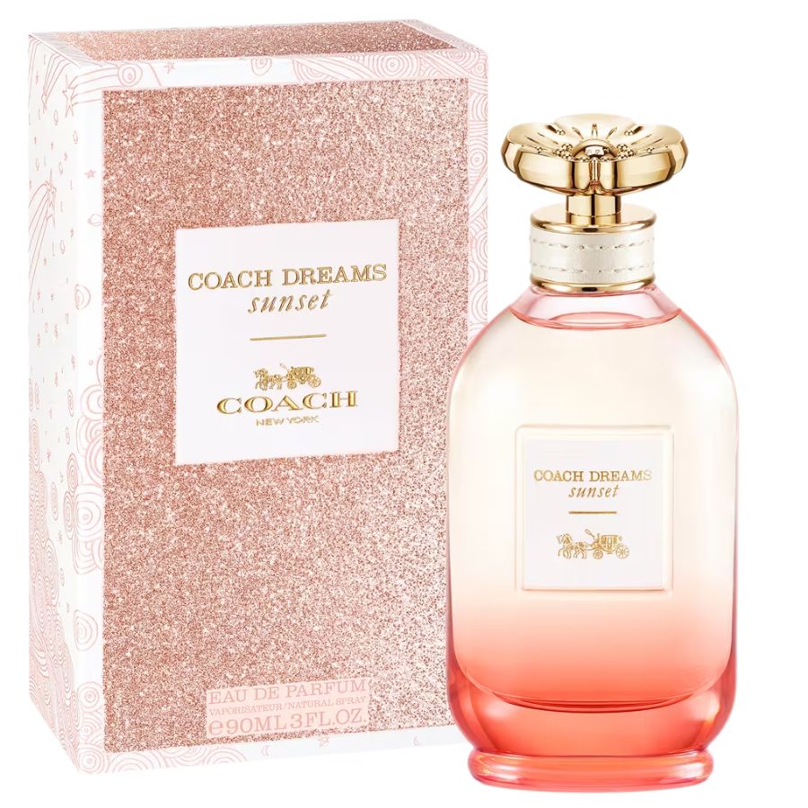Coach Dreams Sunset Eau de Parfum está inspirado en aventuras de espíritu libre, con la puesta de sol en el horizonte.